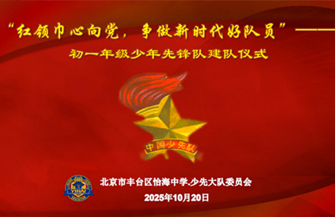 金秋十月,硕果飘香。2025年10月,北京市丰台区怡海中学以“红领巾心向党,争做新时代好队员”为主题,隆重举行2025-2026学年度初一年级少先队建队仪式,初一年级全体师生齐聚现场,共同见