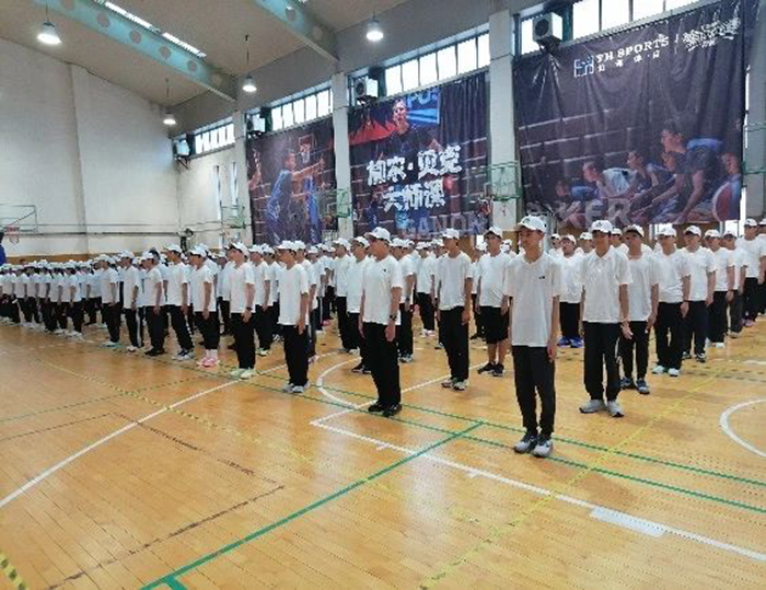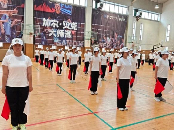 在学校篮球馆,参训同学身姿挺拔、精神抖擞,以蜕变之姿向学校、家长与承训部队教官等汇报了训练成果。