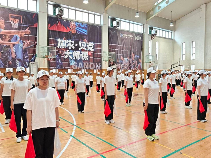 分列式中和旗语展示中,各连队步伐整齐、气势如虹。军训成果展示将氛围推向高潮,擒敌拳刚劲有力,旗语操规范利落,一系列表演既是训练成果的生动呈现,更是学子们吃苦拼搏的有力见证。