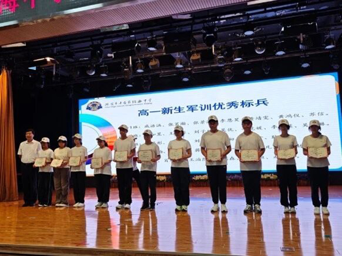 高一年级主任陈城老师宣读表彰决定,主席台领导为优秀学员代表颁奖,表彰他们在军训中的突出表现,激励全体同学。学习他们严于律己的态度、勇于拼搏的精神、团结互助的情怀,希望全体同学带着军训赋予的力量,在即将开启的高中旅程中,脚踏实地、奋勇向前,做最优秀的自己!