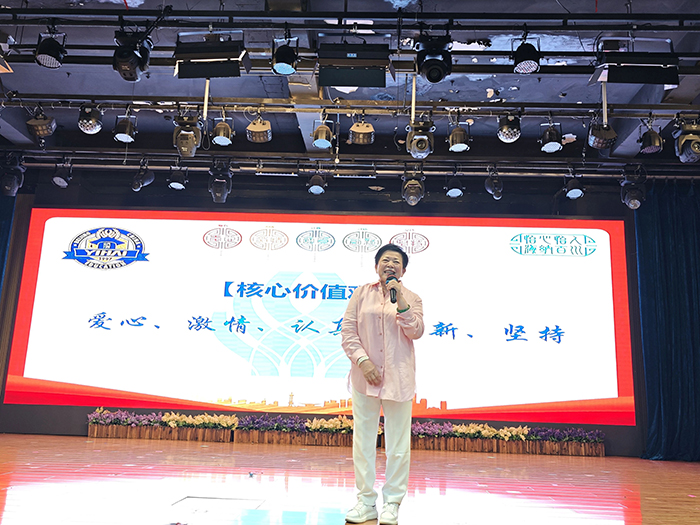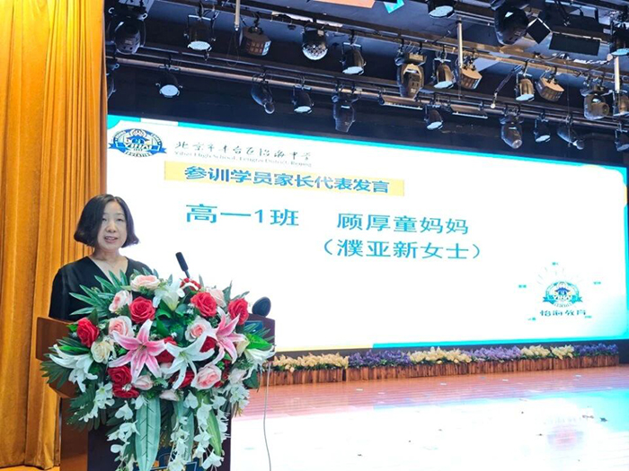 家长代表濮新亚女士讲话:作为家长,见证孩子军训中从“娇弱幼苗”蜕变为“坚毅少年”,深感欣慰。感谢学校组织与教官教导,望孩子们将军训的韧性、纪律融入成长,在怡海中学向阳拔节,长成更挺拔的模样。